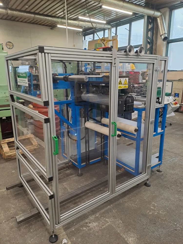 Autorska technologia zgrzewania, precyzyjne mechanizmy transportu i napinania taśmy, autorskie osłony zwiększające bezpieczeństwo.